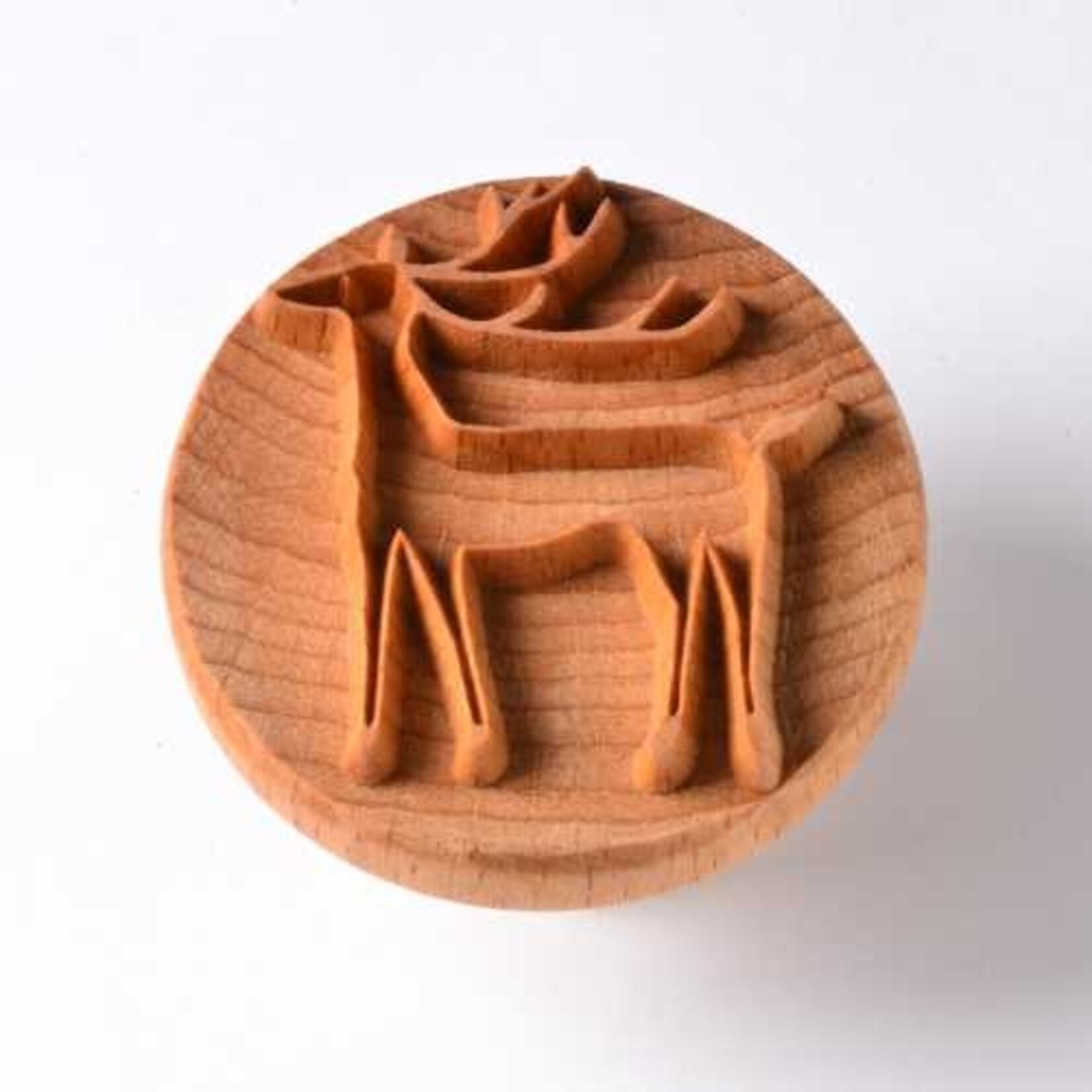The Scxl large reindeer pottery stamp is 6 cm (2.4 inches) in diameter. MKM stamps are beautifully carved, have unique designs, and release well from clay or any soft medium. MKM stamps are made from wood that is precision carved to make deep beautiful impressions. The Scxl large reindeer pottery stamp is also bevel carved, allowing them to release easily from clay. Scxl stamps can be used on pinch pots, slab pieces, and thrown work to create unique designs.