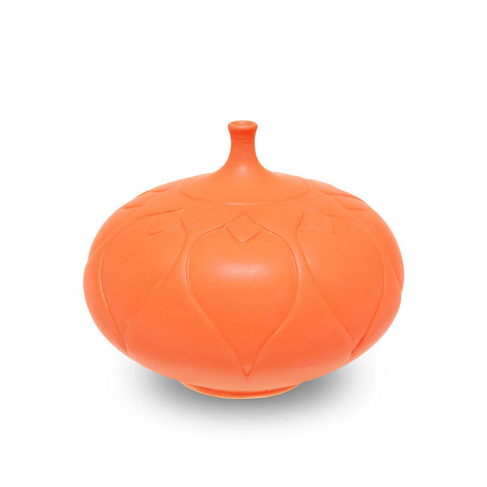 Satin Matte Orange is an opaque, buttery orange glaze that accentuates textured ware and boasts a classic art deco appearance.