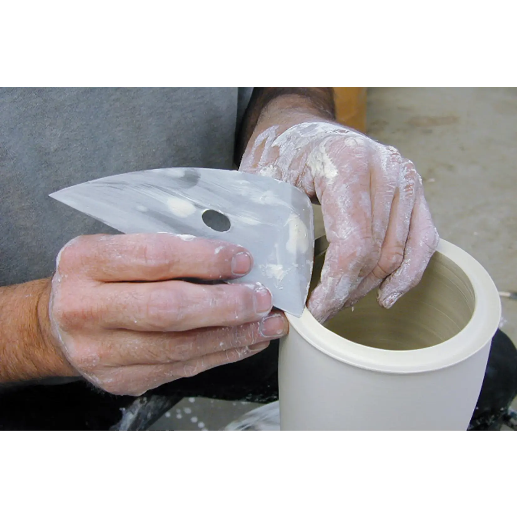 Here is a rib that stands firm. Made of a heavier grade stainless steel, the Shape 7 has less flexibility than some of the other ribs. The blunt end is good for carving away material or removing waste clay on the wheel.